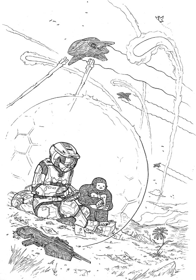 Day 29′s sketch master chief fighting off a flood attack during halo ce.